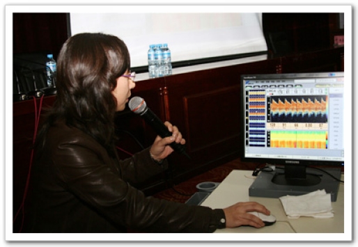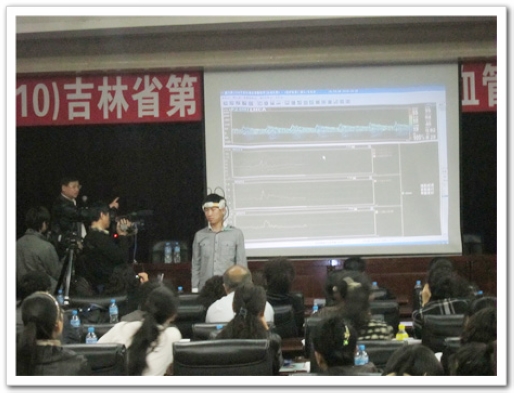德力凱公司作為此次培訓班的主要贊助商,在會場顯著位置設(shè)立了展臺。在為期兩天半的培訓課程中,吉林大學第一醫(yī)院神經(jīng)內(nèi)科的邢英琦教授采用德力凱產(chǎn)品EMS-9UA(自動監(jiān)護頭架系統(tǒng))、EMS-9A(數(shù)字寬頻經(jīng)顱多普勒)分別為參會學員進行了常規(guī)檢測演示及臥立位腦血流檢測的演示。憑借新產(chǎn)品獨特的功能特點,兩次演示都達到了預期效果。特別是臥立位腦血流檢測的演示效果得到了現(xiàn)場專家的首肯。同時,展臺上更是吸引了眾多專家和醫(yī)生前來咨詢、了解該產(chǎn)品的功能特點,場面非常熱烈。